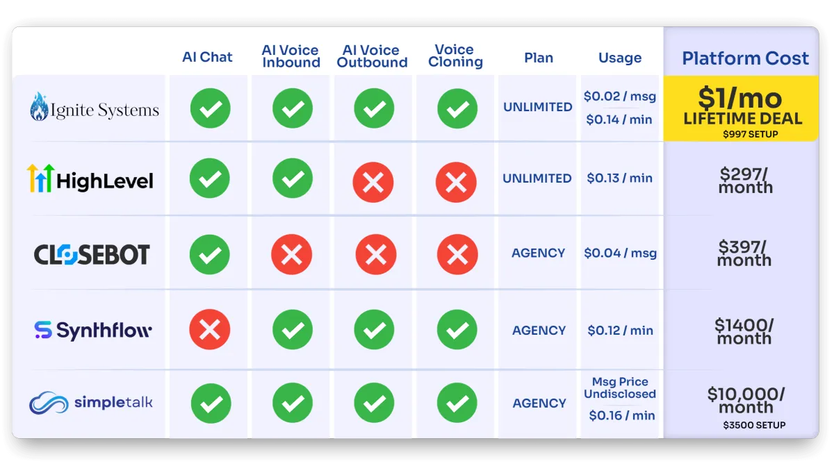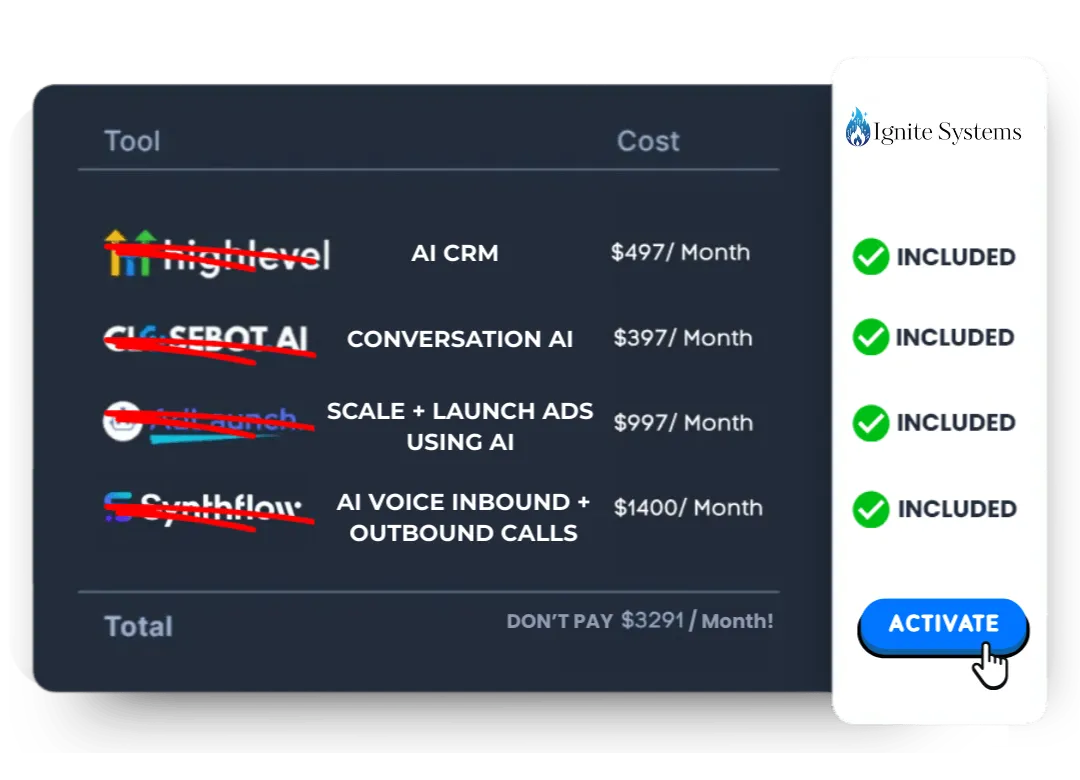 No! Ignite System AI Voice + Chat software has superior features to Go High Levels AI Agents, and make a separate